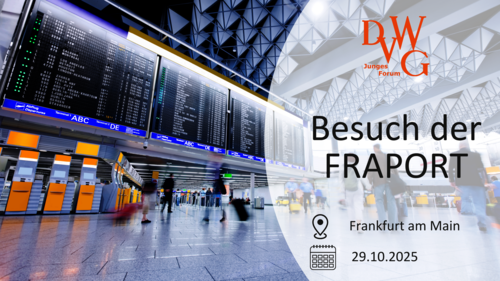 Die Deutsche Verkehrswissenschaftliche Gesellschaft (DVWG) lädt am 29. Oktober 2025 zu einem Besuch bei der Fraport AG am Flughafen Frankfurt ein. Teilnehmende erwartet ein spannender Einblick in die Abläufe und Entwicklungen eines der weltweit bedeutendsten Flughäfen.